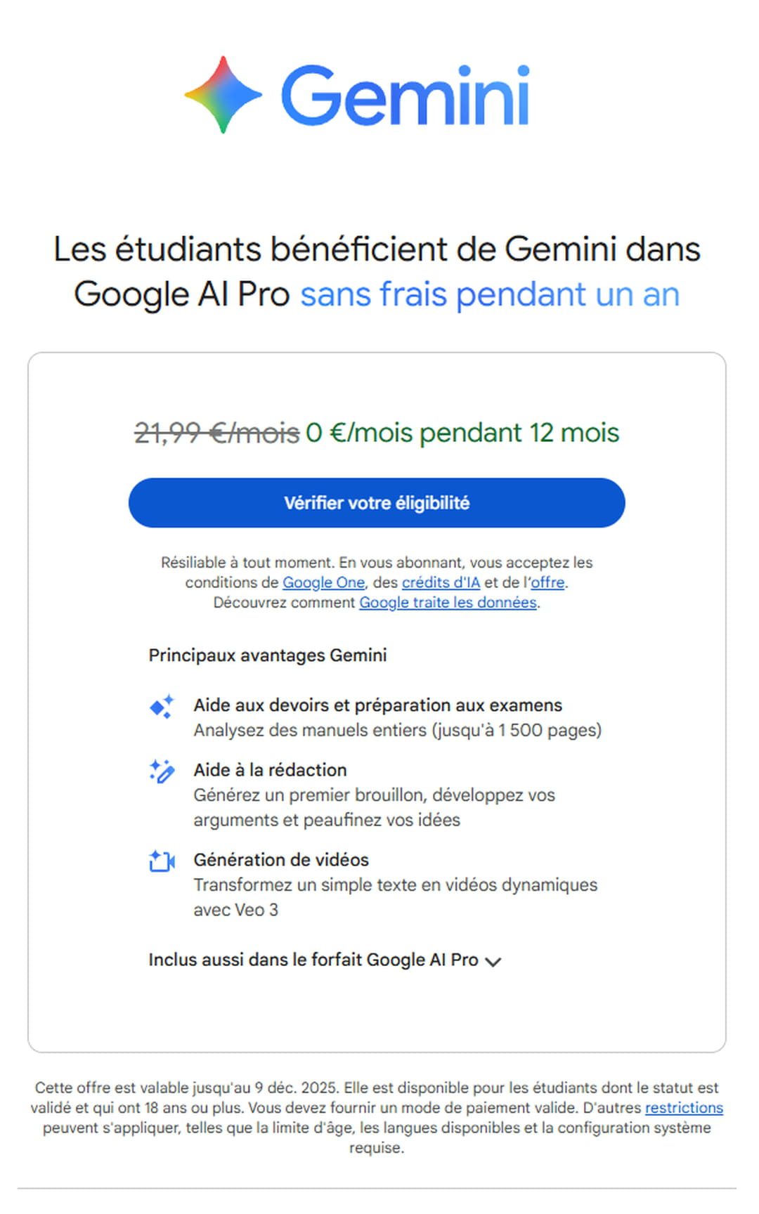 Pour gagner des parts de marché face à OpenAI et son ChatGPT, Google lance une offre spéciale intégrant un accès totalement gratuit à Gemini Pro avec 2 To de stockage pendant un an. Un joli cadeau… sous conditions.
