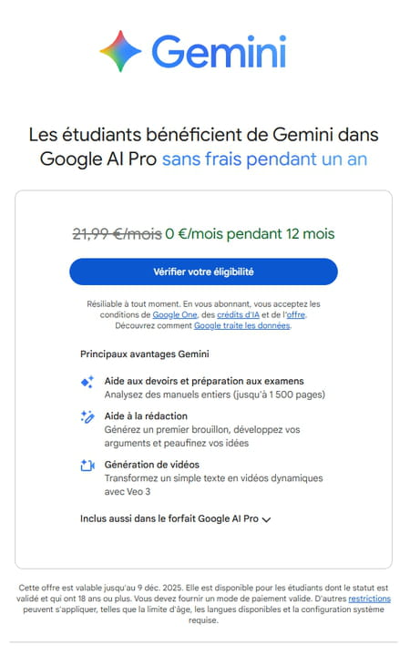 Et, justement, cette opération séduction n'est pas un cadeau complètement désintéressé. Pour Google, c'est avant tout une manière d'installer durablement ses outils d'IA dans les usages d'étudiants. En offrant un an d'accès gratuit, l'entreprise espère ancrer de nouveaux réflexes et, à terme, convertir une génération entière en abonnés payants. Le parallèle avec la stratégie d'OpenAI, qui facture ChatGPT Plus à 23 euros par mois, est évident : Google veut reprendre la main et capter ceux qui n'ont pas encore franchi le pas de l'abonnement.