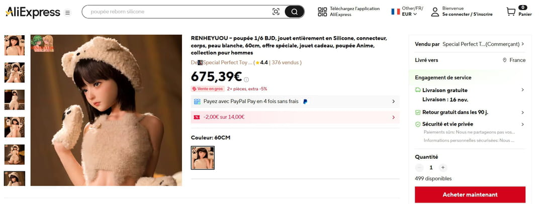 Poupées sexuelles d'enfants : Shein n'est pas le seul concerné, AliExpress en vend aussi