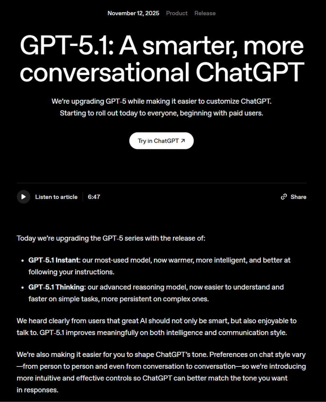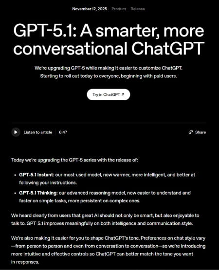 ChatGPT 5.1 : un virage nécessaire après l'échec de GPT-5