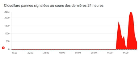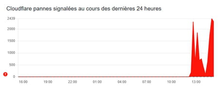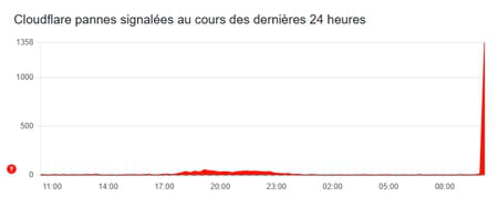 Les signalements se multiplient ce matin sur le site DownDetector qui suit les incidents. On ignore encore la cause du problème, mais tout semble indiquer qu'elle provient des serveurs de Cloudflare cette fois encore.