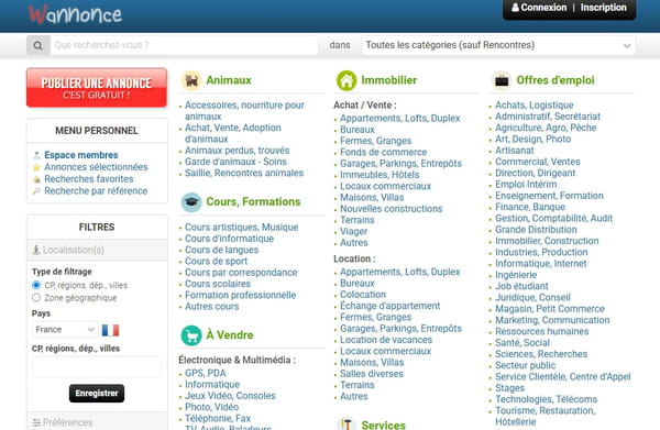 Pour ceux qui ne connaissent pas, Wannonce était un site où chacun, qu'il s'agisse d'un particulier ou d'un professionnel, pouvait passer et répondre à des petites annonces gratuitement – c'était un peu une sorte de Leboncoin sur le principe. Ces annonces étaient classées dans plusieurs catégories, comme services à domicile, immobilier, animaux, offres d'emploi ou encore véhicules d'occasion. Pour en publier une, il suffisait de se créer un compte, après quoi les utilisateurs pouvaient poster autant d'offres qu'ils le souhaitaient, sans aucune limitation. Ce système était reconnu pour offrir une grande liberté. Un peu trop d'ailleurs.