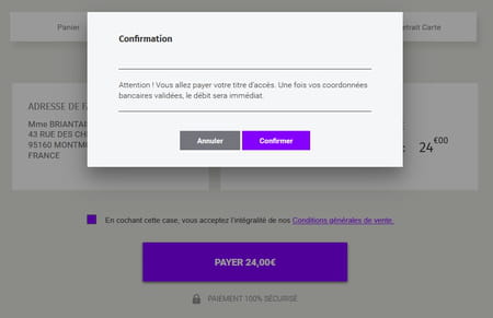► Une fenêtre pop-up surgit. Cliquez sur le bouton violet Confirmer.