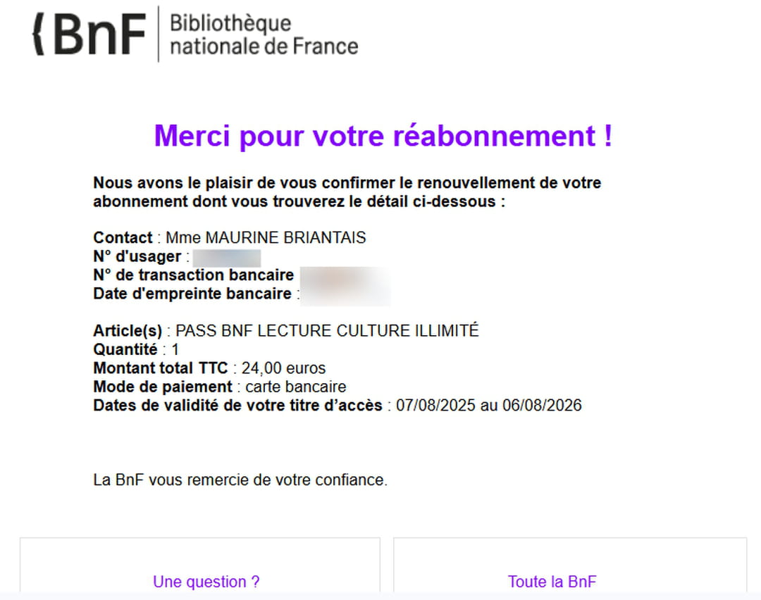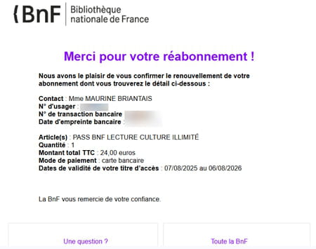 ► Vous allez recevoir un mail confirmant votre abonnement (ou réabonnement). Et voilà !