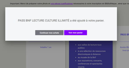 ► Une fenêtre pop-up apparait. Cliquez sur le bouton violet Voir mon panier.