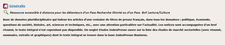 - Généralis : plus de 200 revues et magazines dépouillées ; des dossiers à télécharger sur des grands sujets de société ;