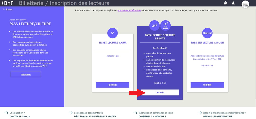 ► Choisissez le Pass Lecture/Culture illimité et cliquez sur le bouton blanc Choisir.
