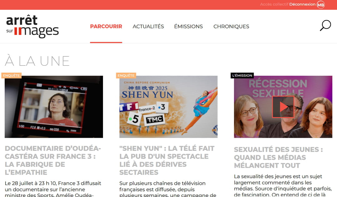 ► Vous êtes redirigé vers le site Internet du média. En haut à droite, vous êtes normalement identifié comme Accès collectif. Bonne navigation !
