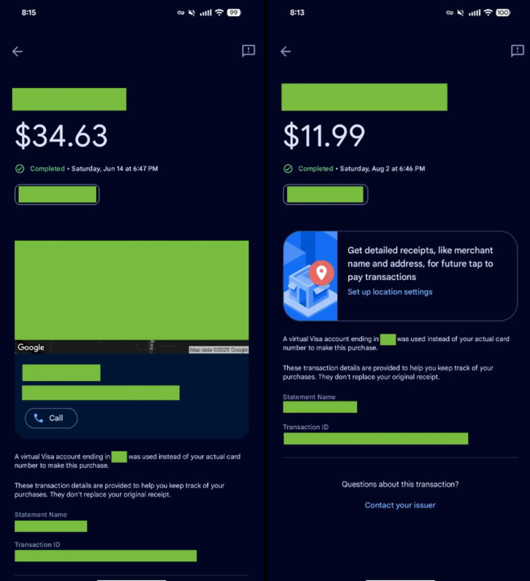 Avec cette nouvelle fonction, chaque reçu affiche désormais sur une carte, avec son montant, le nom du magasin, son adresse et un bouton pour l'appeler directement lorsque un numéro de téléphone est disponible. Auparavant, l'application affichait uniquement le coût, le jour et la date, le relevé et l'identifiant de la transaction. Notons que, suite à une mise à jour en juillet, cette fonction était activée par défaut. Désormais, il faut activer la "Localisation précise" dans l'application pour profiter de ce nouvel aperçu. Une petite attention que l'on apprécie vis-à-vis de la confidentialité des données.