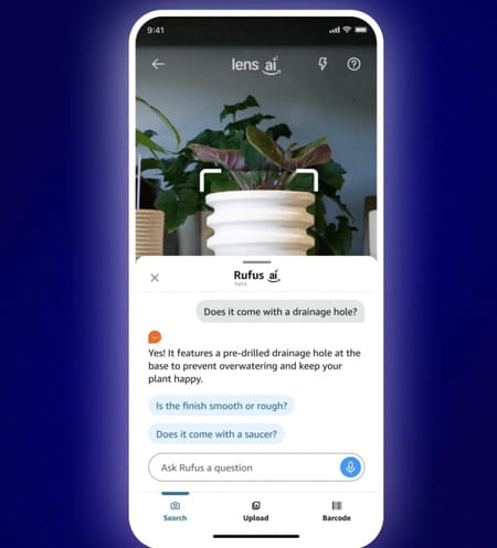 Grâce à la nouvelle mise à jour, qui a pour l'instant été déployée aux États-Unis sur l'application mobile iOS, l'application n'a plus besoin que les utilisateurs prennent un cliché pour effectuer une recherche. Désormais, il suffit d'ouvrir l'appareil photo disponible sur la plateforme pour scanner les articles en live et ainsi recevoir des informations sur les produits correspondants. Une option beaucoup plus intuitive, baptisée Lens Live, qui fonctionne grâce à Rufus, l'intelligence artificielle du géant du commerce en ligne.
