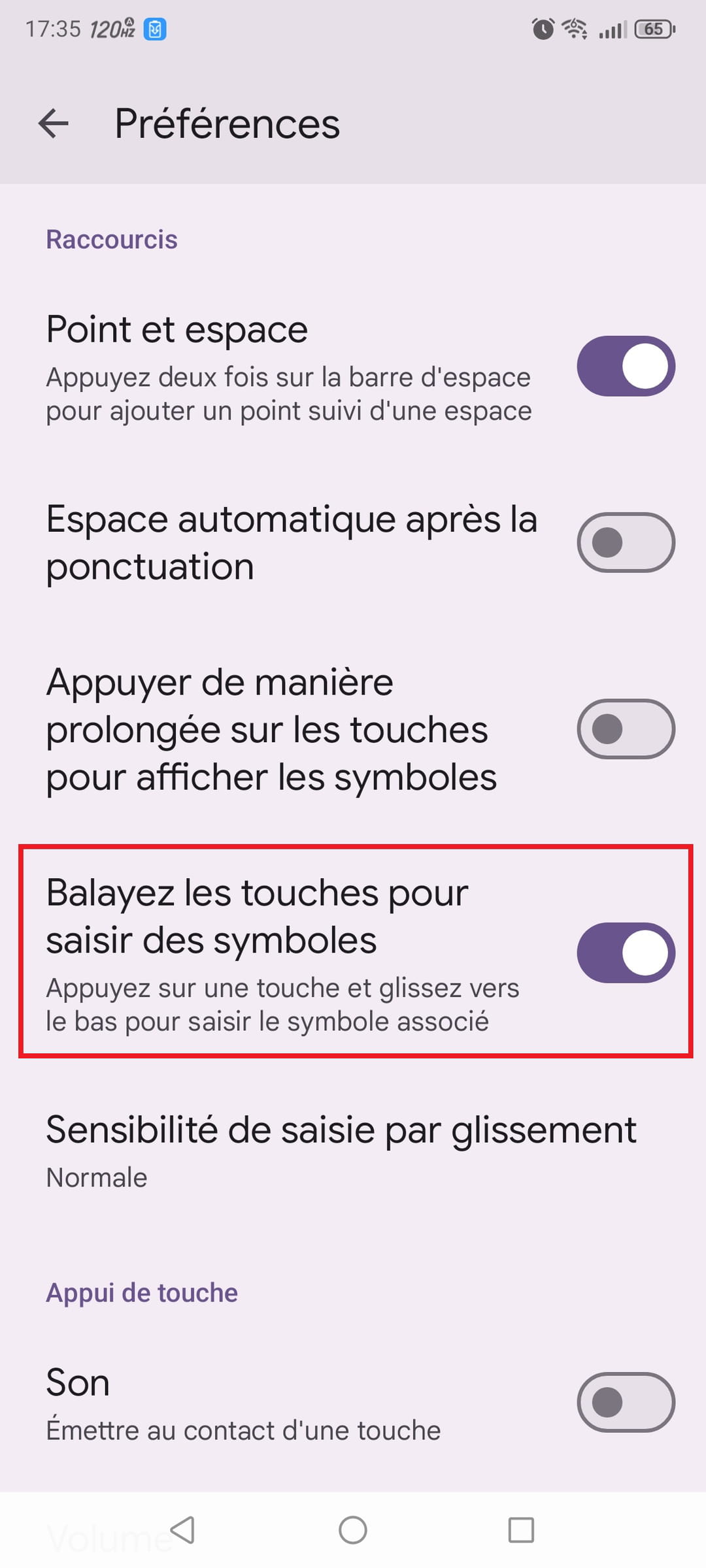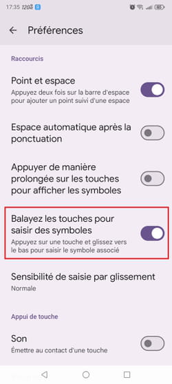 Pour activer cette fonction, il suffit d'aller dans les Paramètres du clavier Gboard, puis dans "Préférences", puis "Raccourcis", et enfin cocher "Balayer les touches pour insérer des symboles". Il est également possible d'activer l'option "Appuyer de manière prolongée sur les touches pour afficher les symboles" afin de combiner les deux modes, et d'ajuster la sensibilité via le curseur qui se trouve un peu plus bas dans les options. L'option est actuellement en cours de déploiement. Nous y avons d'ores et déjà accès, mais il est possible qu'il faille encore attendre quelques jours pour que tout puisse en profiter.