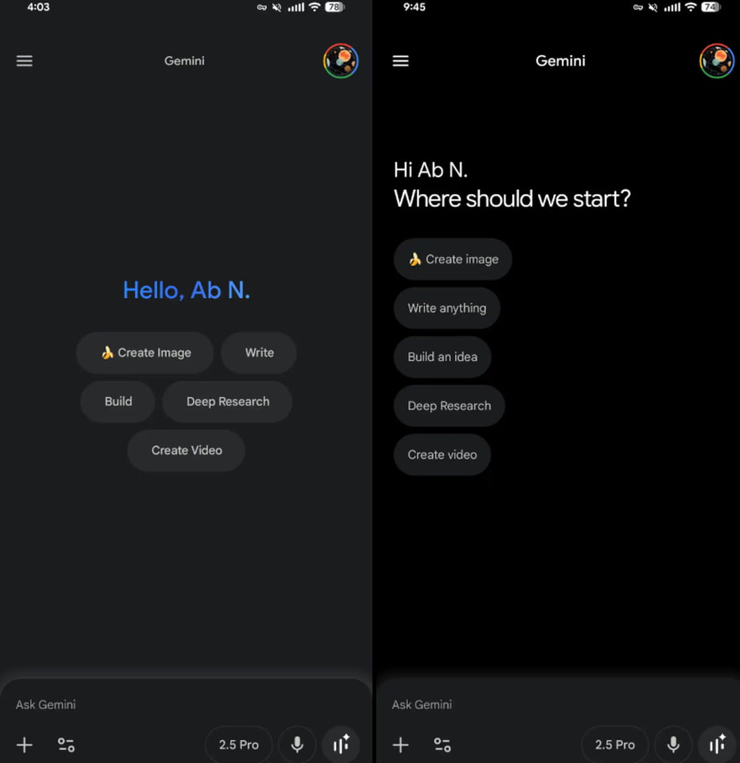 Bien décidé à faire de Gemini le chatbot par excellence, celui dont les utilisateurs ont recours au quotidien, Google peaufine petit à petit son IA sur toutes ses plateformes, y compris sur mobile. Comme l'ont repéré nos confrères de 9to5google, l'application se dote d'un nouvel écran d'accueil, d'un mode sombre réellement noir, d'un espace où l'on peut retrouver tous ses contenus et de nouveaux boutons pour les conversations. Des petits détails qui, mis bout à bout, apportent une vraie plus-value.