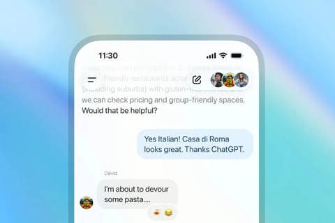 Pour l'occasion, ChatGPT s'est doté de "comportements sociaux" afin de pouvoir décider quand répondre et quand se contenter de suivre silencieusement la discussion. Le chatbot est également capable de réagir aux messages avec des émojis, et d'utiliser les photos de profil des participants pour générer des images personnalisées. Pour l'interpeller directement, il suffit de mentionner "ChatGPT dans un message". Notons que les fonctions de recherche sur le Web sont disponibles dans les discussions de groupe.