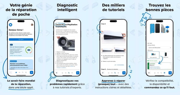 iFixit déploie FixBot, un tout nouvel assistant de réparation assisté par IA. Disponible dans l'application mobile iFixit, ce chatbot vise à aider les utilisateurs à poser un diagnostic en les guidant pas à pas vers une solution. Une excellente initiative !