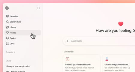 "Conçu en étroite collaboration avec des médecins, ChatGPT Santé aide les personnes à jouer un rôle plus actif dans la compréhension et la gestion de leur santé et de leur bien-être, tout en venant en soutien – et non en remplacement – des soins prodigués par des professionnels de santé", explique OpenAI dans son communiqué. Le service prend la forme d'un onglet dédié dans l'interface de ChatGPT. Le chatbot se propose d'analyser et de centraliser certaines données médicales provenant de carnets de santé – l'intégration de dossiers médicaux électroniques n'est possible qu'aux États-Unis, via b.well – et d'applications comme Apple Santé ou MyFitnessPal.