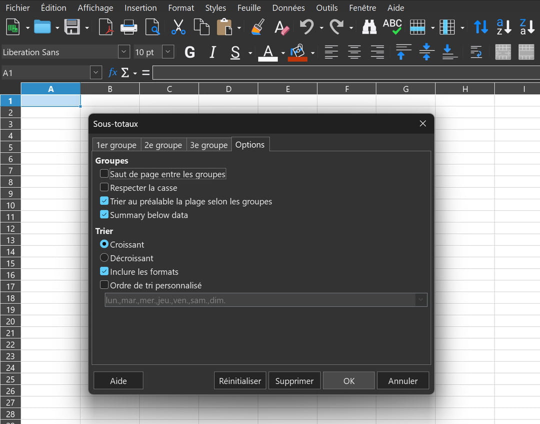 Le tableur Calc n'est pas en reste non plus, avec notamment l'apparition d'une option Summary below data (Synthèse sous les données), permettant de choisir si les sous-totaux sont insérés au-dessus ou au-dessous des données lors de l'utilisation de la fonction Sous-totaux, une nouvelle boite de dialogue pour l'outil Gérer les enregistrements en double, une amélioration de l'ergonomie de l'Assistant Fonction et du panneau latéral Fonctions, ou encore de nouvelles options de protection des feuilles pour les tables dynamiques, les graphiques dynamiques et les auto-filtres.