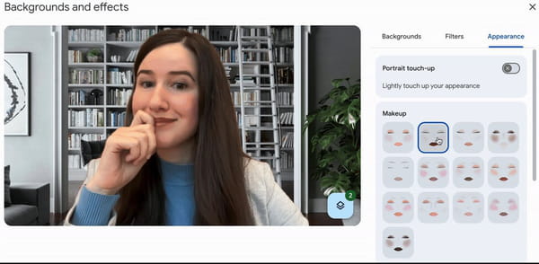 Ces nouveaux filtres viennent donc rejoindre ceux de la fonction "Retouches" mentionnée plus haut. Jusqu'à présent, les utilisateurs pouvaient lisser leur peau, blanchir leurs yeux ou encore ajuster la luminosité offerte à l'écran. Désormais, ils peuvent également compter sur une palette de maquillage virtuelle afin de corriger leur teint, s'appliquer du rouge à lèvres ou des fards à paupières. Ces douze styles, plus ou moins naturels, s'adaptent à leur visage et restent en place en cas de mouvement, s'ils passent leur main devant leur bouche ou boivent du café par exemple.