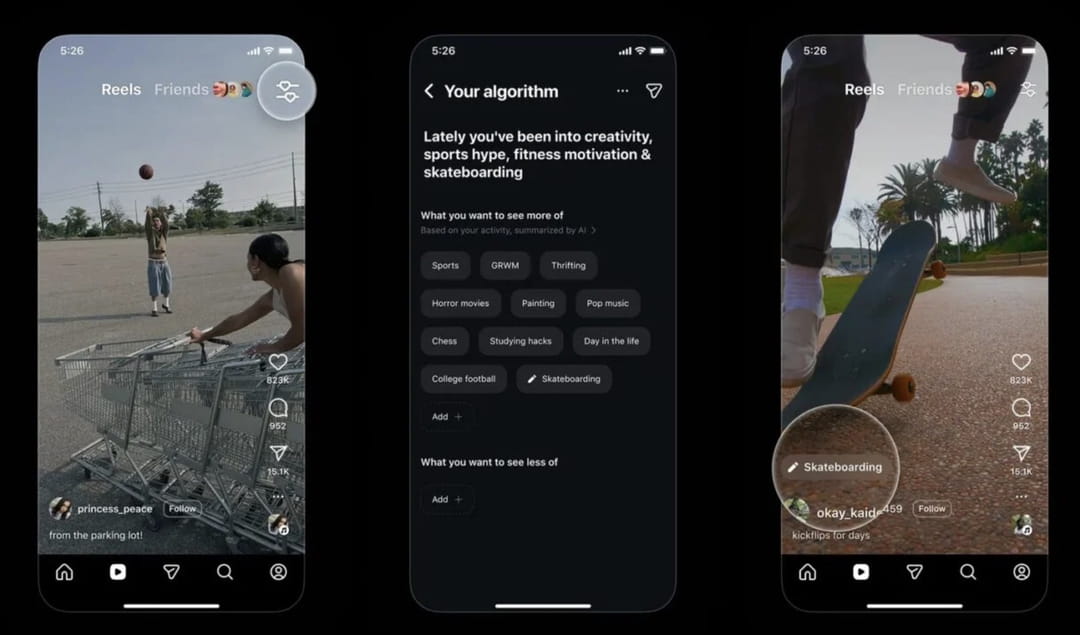 Cette fonction, baptisée "Your Algorithm" (Votre Algorithme), vise à offrir plus de transparence et un plus grand contrôle sur le fonctionnement du système de recommandations. Au lieu de subir une sélection opaque de vidéos, les utilisateurs vont pouvoir comprendre quels thèmes ou centres d'intérêt l'algorithme juge pertinents, et modifier ces paramètres eux-mêmes. Concrètement, une icône apparaît désormais dans l'onglet Reels, dans le coin supérieur de l'écran. En appuyant dessus, ils vont pouvoir accéder à un tableau de bord personnalisé qui liste les sujets jugés pertinents d'après leur historique d'interactions, comme les sujets regardés ou les vidéos likées. Chaque thème s'accompagnera d'un résumé généré par l'IA, censé expliquer pourquoi ce type de vidéos apparaît régulièrement sur le fil de Reels.
