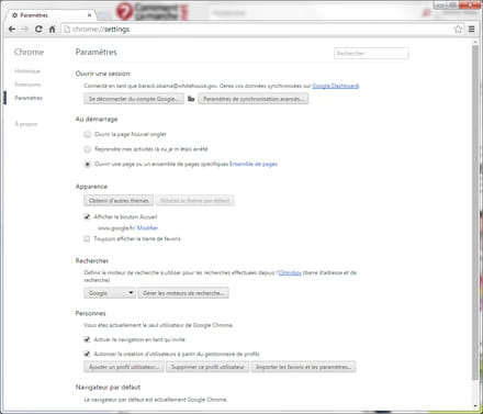 La connexion à Google (et Gmail) permet de retrouver facilement tous ses favoris et ses extensions si vous passez d'une machine à une autre. en rentrant dans votre profil , vous pouvez personnaliser entièrement Google Chrome et ainsi retrouver toutes vos informations, extensions et onglets facilement.Créez un nouveau profil : dans menu > Données personnelles. Attention, cette option ne garantit pas une totale confidentialité lors de votre votre navigation. Vous vous verrez proposer en plus une fonctionnalité pour installer des applications qui va vous permettre d'installer vos propres applications. Pour finir, l'option Multitab (multi-onglets), vous permettra, en sélectionnant plusieurs onglets si vous gardez la touche Ctrl enfoncée. Vous pourrez ainsi supprimer, déplacer, ou rafraîchir tout le groupe d'onglets sélectionnés d'un coup.