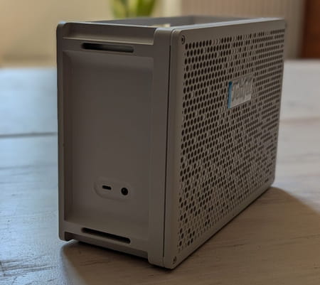 Sur le flanc gauche, on trouve une entrée audio analogique en mini jack stéréo qui permet de brancher, via un câble adapté – non fourni –, une source compatible au niveau ligne – lecteur CD, console de jeu, etc. Une entrée auxiliaire qui peut dépanner – par exemple, pour écouter du son sans la latence du Bluetooth –, mais qui ne permet évidemment pas de piloter la source depuis l'enceinte ou l'appli Teufel, analogique oblige.