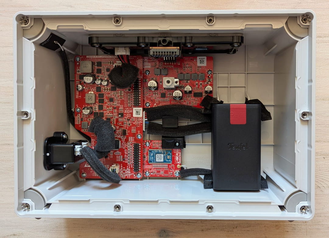 Quelques minutes suffisent ainsi pour démonter la grille de plastique qui protège les haut-parleurs, puis pour retirer le baffe – le panneau qui les soutient – et accéder aux entrailles de la Mynd. L'occasion de vérifier que Teufel a bien conçu son produit: non seulement la batterie est facilement accessible remplaçable, mais en plus, tout est proprement et soigneusement assemblé, avec de belles cartes électroniques, des nappes et des connecteurs solides et un joint d'étanchéité solide. Du beau travail, digne de la réputation du constructeur allemand !