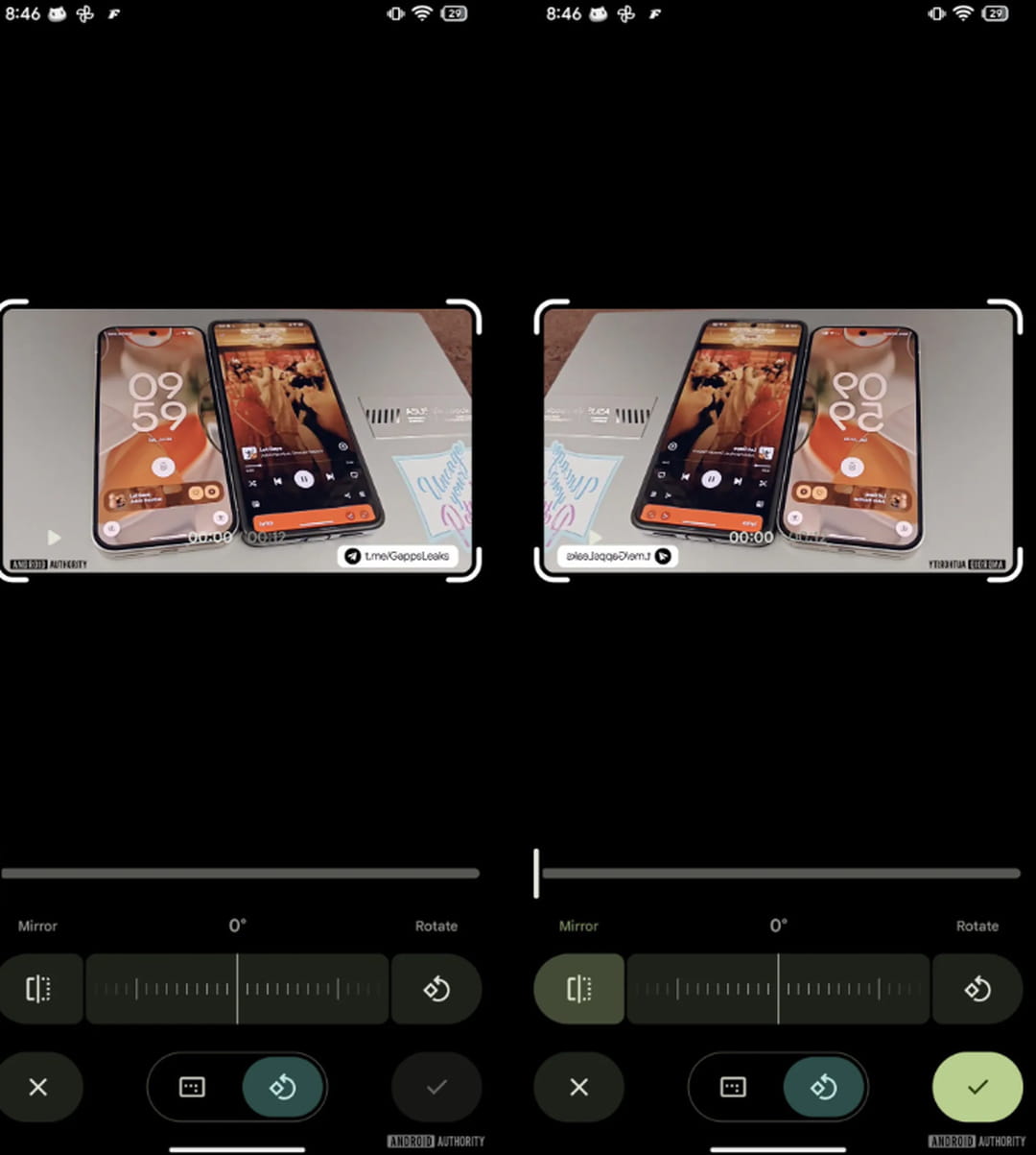 L'autre ajout est celui de deux nouvelles fonctions. La première, accessible grâce au bouton "Miroir" dans le menu "Recadrage", permet de retourner une vidéo, c'est-à-dire de l'inverser horizontalement. Autant dire qu'elle sera très pratique pour corriger les vidéos prises avec la caméra selfie de son smartphone ou sa webcam.