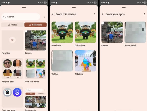 Google a également amélioré d'autres points du sélecteur de photos. Ainsi, l'onglet "Albums", désormais appelé "Collections", a droit à une petite refonte. Désormais, les albums locaux et ceux créés par des applications tierces, au lieu d'être affichés pêle-mêle dans une longue liste, sont clairement distingués dans les catégories "De cet appareil" et "De vos applications". Une façon de clarifier l'origine des médias et d'éviter la confusion entre les dossiers personnels et ceux générés automatiquement par d'autres logiciels. Un pas important vers une meilleure organisation !