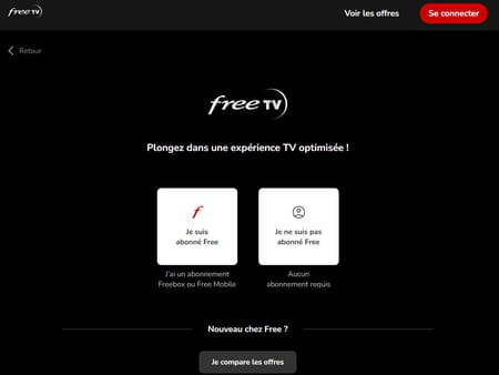 Pour profiter de Free TV gratuitement, il suffit de se rendre sur l'application mobile (disponible sur l'App Store et le Play Store), sur l'application TV (sur les téléviseurs connectés Samsung, LG, Philips et Hisense, ainsi que sur Amazon Fire TV, Android TV, Apple TV et les vidéoprojecteurs LG et Hisense) ou sur tv.free.fr. Voici la marche à suivre sur la version Web :