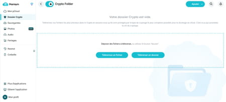 Autre fonction clé : le dossier Crypto. Il s'agit d'un espace chiffré côté client, protégé par un mot de passe que seul l'utilisateur connaît. pCloud précise ne pas avoir accès à cette clé, ce qui signifie que même l'entreprise ne peut pas consulter les fichiers stockés dans ce dossier.