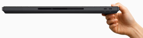 En revanche, la connectique semble beaucoup plus spartiate, avec seulement deux ports USB-C à l'arrière, l'un en USB 4 (40 Gbit/s) et l'autre en USB 3.2 Gen 2 -(10 Gbit/s), tous deux compatibles avec le transfert de données, l'affichage en DisplayPOrt et l'alimentation PowerDelivery à 65 W. C'est peu, d'autant qu'il n'y a pas de sortie HDMI pour brancher un écran ou un téléviseur, et qu'on ne trouve aucune prise USB-A basique. Il faudra au moins un hub ou un adaptateur pour profiter pleinement de tous les avantages de ces interfaces.