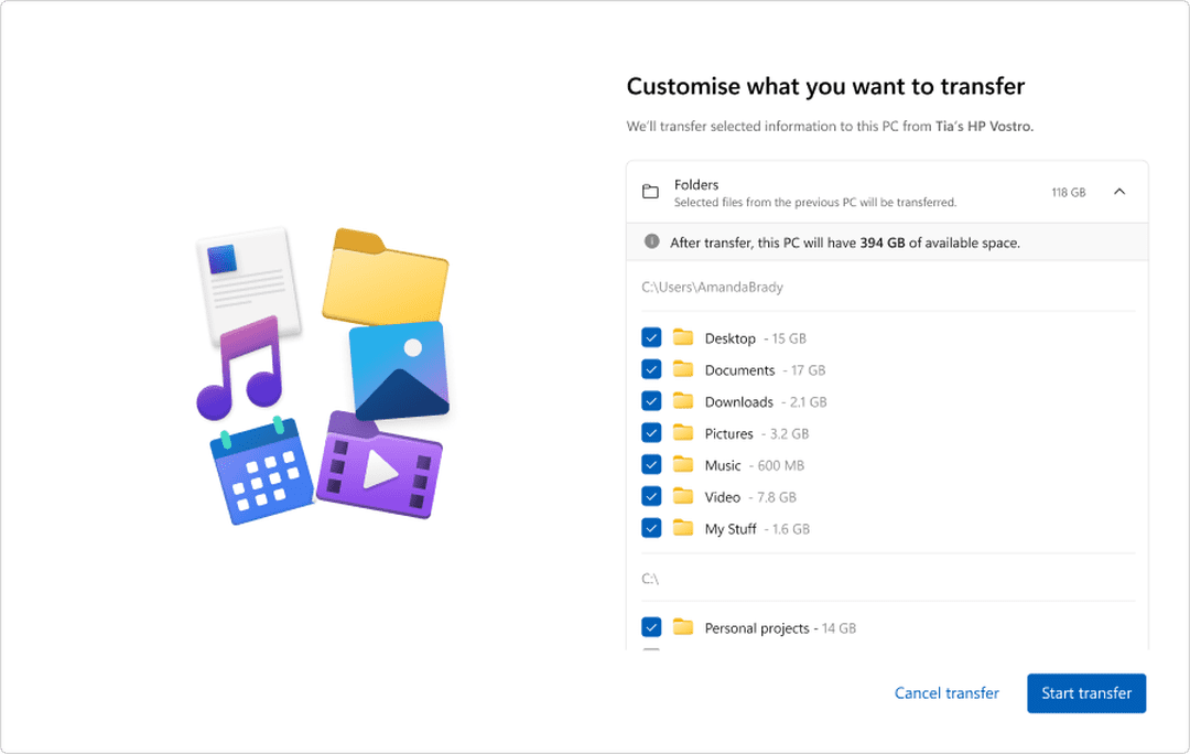 Windows 11 vous aidera à récupérer le contenu d'un ancien PC (mais pas tout)