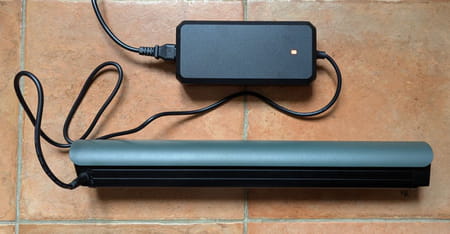 L'opération prend environ une heure, entre le déballage des pièces (bien protégées) et l'assemblage. Le mieux est d'ailleurs de profiter de ce temps pour charger la batterie, qui se retire très facilement, en tournant une des clés fournies avec le vélo. Comme on l'a signalé, on peut aussi la charger sans la démonter, en branchant directement le câble du chargeur dans la petite prise prévue à cet effet. Surtout, comme promis par le constructeur, la charge s'effectue vraiment rapidement : nous avons effectivement atteint les 100 % en 1 heure 45, ce qui est très appréciable. On est loin des 6 ou 7 heures que nécessitent certains vélos.