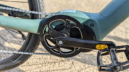 Autre atout majeur du N1 Pro, son moteur. En effet, si sa puissance est limitée à 250 W comme l'impose la législation, il développe un couple impressionnant de 80 Nm : une valeur bien supérieure à ce que proposent la plupart des vélos de ville (autour de 40 Nm) et qui correspond à ce que l'on trouve sur des VTT, ces modèles tout terrain destinés à arpenter des chemins difficiles et à gravir des côtes ardues. Pour l'image, c'est un eu comme si l'on mettait un moteur de 4x4 dans une citadine. On peut ainsi s'attendre à une assistance puissante permettant de rouler sans effort. Pour ne rien gâter, ce moteur (un modèle Ananda à capteur de couple) est placé dans le pédalier : une position centrale qui optimise l'équilibre général, contrairement aux modèles où le moteur est situé dans l'essieu de la roue arrière.