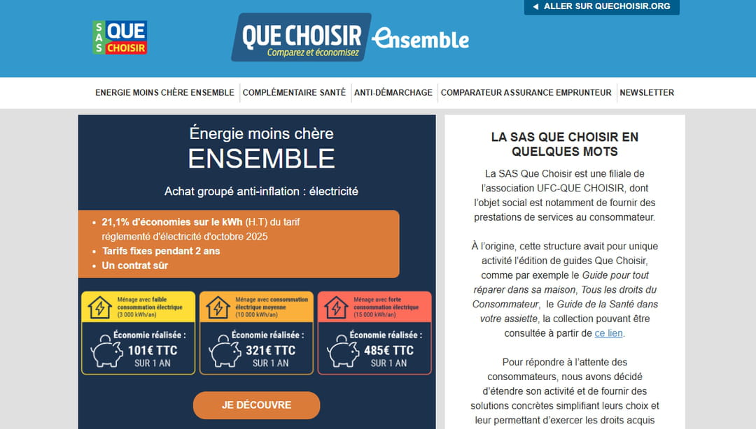 À l'heure où l'électricité reste l'une des principales sources d'inquiétude pour les foyers français, toute baisse durable des tarifs attire forcément l'attention. C'est justement ce que propose l'UFC-Que Choisir à travers une vaste opération d'achat groupé baptisée " Énergie moins chère ensemble ". Le principe est simple : regrouper des milliers de consommateurs pour négocier collectivement un contrat d'électricité plus avantageux auprès des fournisseurs. Résultat : un tarif fixe, garanti deux ans, et jusqu'à 21 % d'économie par rapport au tarif réglementé.
