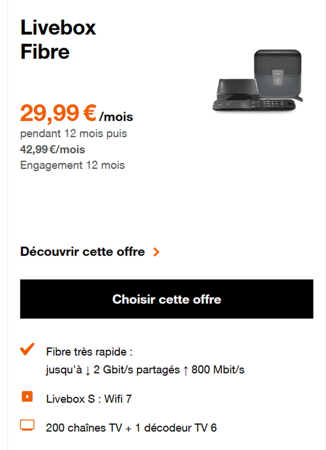 Aucune action n'est nécessaire pour profiter de cette montée en puissance, puisqu'elle est déjà activée automatiquement pour tous les abonnés concernés, et ce, sans changement de prix ni de conditions contractuelles. Avec cet upgrade, la Livebox Zen Fibre est désormais au même niveau de performance que la Livebox Fibre standard, qui est actuellement commercialisée au tarif de 29,99 euros par mois les douze premiers mois, puis de 42,99 euros par mois. Les clients de la formule Zen se retrouvent donc avec une connexion équivalente aux nouveaux venus.
