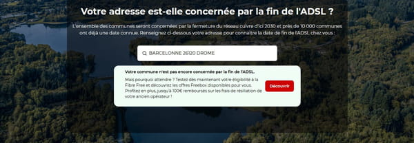 Ainsi, depuis 2024, les communes sont petit à petit déconnectées du réseau – près de 10 000 communes disposent déjà d'une échéance officielle. Et si près de 80 % des foyers français sont déjà raccordés à la fibre, ceux qui sont encore en ADSL doivent anticiper cette transition inéluctable. Pour les aider, Free vient de mettre en ligne un outil totalement gratuit permettant de connaître la date de la coupure de l'ADSL dans leur commune, à une adresse donnée.