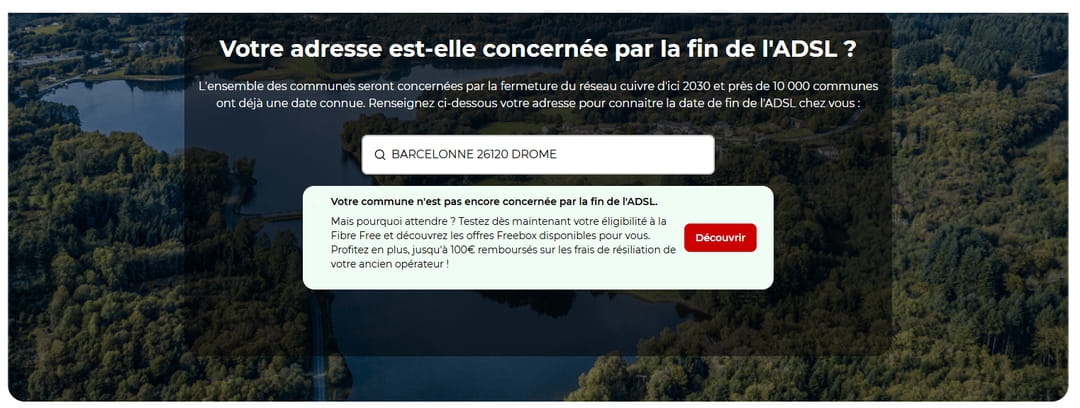Ainsi, depuis 2024, les communes sont petit à petit déconnectées du réseau – près de 10 000 communes disposent déjà d'une échéance officielle. Et si près de 80 % des foyers français sont déjà raccordés à la fibre, ceux qui sont encore en ADSL doivent anticiper cette transition inéluctable. Pour les aider, Free vient de mettre en ligne un outil totalement gratuit permettant de connaître la date de la coupure de l'ADSL dans leur commune, à une adresse donnée.