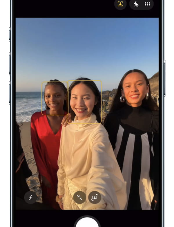 Pas de compromis en revanche côté caméra selfie. L'iPhone Air bénéficie du tout nouveau capteurs de 18 Mpx de forme carrée, permettant de prendre des selfies à la verticale ou à l'horizontale sans avoir à faire pivoter l'iPhone dans la main. Et la caméra frontale de l'iPhone Air est également compatible avec la fonction Cadre centré pour garder automatiquement votre visage dans le cadre pendant un appel vidéo, et aussi pour agrandir automatiquement le cadrage si d'autres personnes entrent dans le champs. Une réussite !