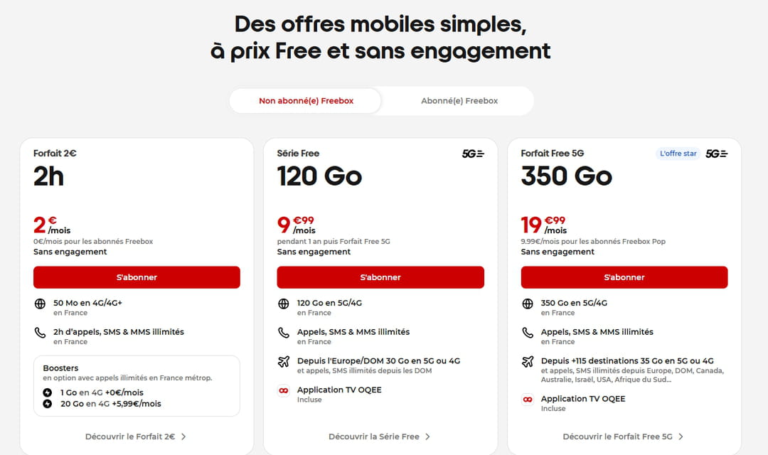 L'opérateur facilite ainsi la lisibilité de ses offres et participe à la démocratisation la technologie – tout le monde n'est pas au courant de son existence et ne pense donc pas à aller l'activer. À titre de comparaison, Orange propose la 5G+ sous la forme d'une option gratuite et impose un délai de plusieurs semaines pour en bénéficier. De son côté, Bouygues Telecom ne la propose que sur son offre haut de gamme de 300 Go à 59,99 euros par mois. Quant à SFR, il n'y en a tout simplement pas.
