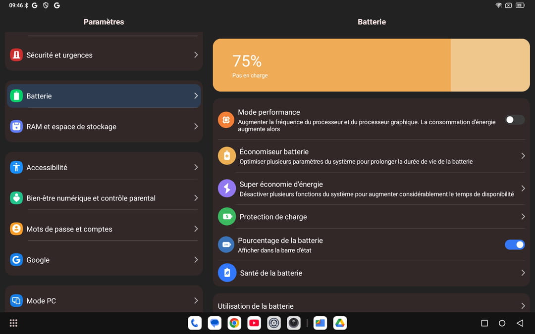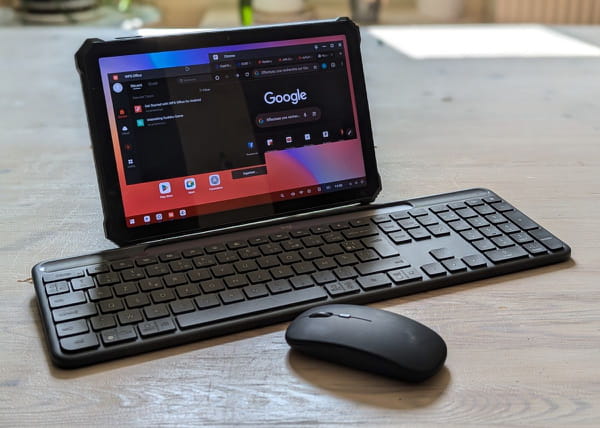 Une des autres originalités de l'Active 12 Pro, c'est son mode PC. Un mode qui s'active directement dans les paramètres système et qui permet d'utiliser la tablette comme un véritable ordinateur. Et contrairement à ce que l'on pourrait imaginer, ce mode n'a rien d'un gadget. Car une fois que l'on a connecté un clavier et une souris en Bluetooth, de nombreuses manipulations deviennent plus faciles. On peut ainsi taper du texte plus confortablement qu'avec le clavier virtuel et utiliser les boutons et la molette de la souris pour naviguer plus rapidement dans l'interface. Et pas besoin d'acheter des accessoires dédiés de Blackview : des claviers et de souris PC Bluetooth ordinaires conviennent parfaitement, comme nous l'avons vérifié lors de nos tests, y compris des modèles "no name" premier prix, qui ont été parfaitement reconnus.