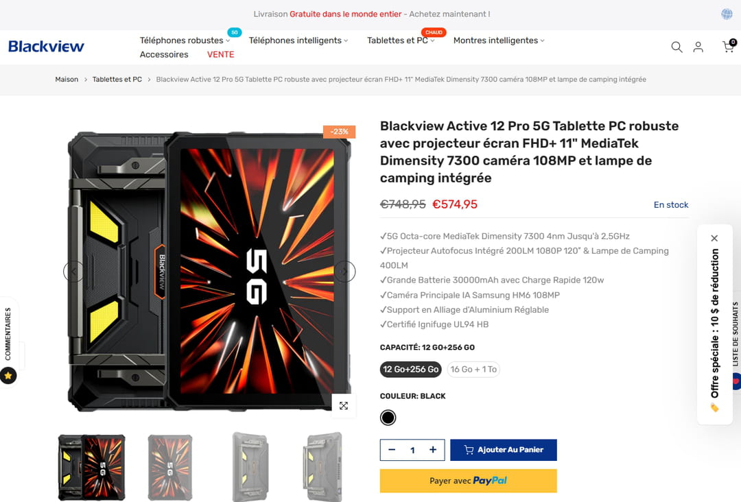 Quant à son prix, il reste très raisonnable compte tenu de ses multiples fonctions : car si son tarif officiel de 750 euros peut sembler un brin élevé, on la trouve actuellement à 575 euros sur le site de Blackview, ce qui est nettement plus abordable. On peut même l'acheter moins cher encore grâce au code de réduction VYE835J2C7Y6 valable jusqu'au 31 octobre. Cela reste plus élevé que des tablettes classiques signées Xiaomi, Realme, OnePlus, Honor ou Huawei, par exemple, mais c'est le prix pour s'offrir un modèle renforcé bourré de fonctions… et sortir du lot : clairement, l'Active 12 Pro est tout sauf banale !