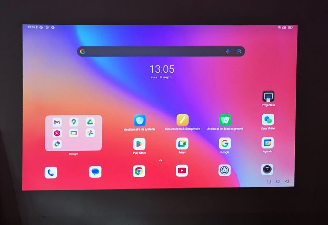 Il n'empêche, le résultat reste tout à fait regardable, d'autant que l'on peut profiter facilement d'un grand format à seulement 1,80 m de distance, on obtient une image de 1,80 m de diagonale. Pas mal pour une simple tablette ! D'autant que l'installation reste simple et rapide, notamment grâce au pied qui peut pivoter de 0 à 180 ° et qui maintient parfaitement l'Active 12 Pro sur le sol, une table ou tout autre supporte horizontal.