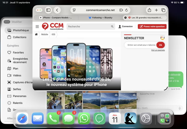 Jusqu'à l'arrivée d'iPadOS 26 et du multi-fenêtrage. Oui, vous avez bien lu, c'est LA nouveauté la plus importante de la nouvelle version du système des iPad : on peut désormais ouvrir plusieurs applications à la fois, dans des fenêtres distinctes qui peuvent se chevaucher, et que l'on peut déplacer et redimensionner à loisir. Comme sur un ordinateur ! Enfin.