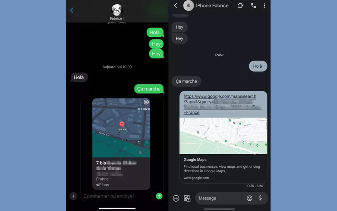 Votre contact disposera alors sur son mobile d'une carte avec votre localisation comme point de repère. Bonne nouvelle, la méthode fonctionne quel que soit le type de mobile vers lequel est expédié votre message. Vous pouvez donc envoyer un SMS de localisation depuis un iPhone (avec Plans donc) vers un smartphone Android et vice-versa sans craindre de problème de compatibilité. De quoi vous sortir de l'embarras rapidement. Seule obligation : l'appareil doit être connecté à un réseau 3G/4G/5G ou Wi-Fi pour expédier ces données de géolocalisation.