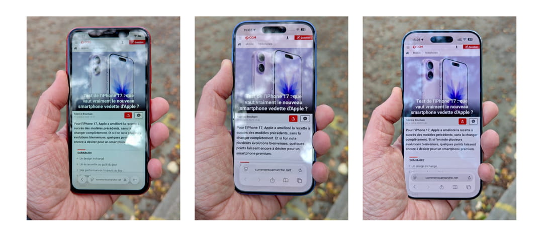 Pendant la présentation de septembre, Apple a bien insisté sur le fait que l'iPhone Air n'était pas un iPhone au rabais avec plusieurs arguments de poids, si l'on ose dire. Revenons d'abord sur le magnifique écran de 6,5 pouces doté de la technologie ProMotion à rafraîchissement variable de 1 à 120 Hz qui lui permet notamment de proposer la fonction Écran toujours allumé en mode veille, avec un impact limité sur l'autonomie. Et aussi, bien sûr, d'assurer une fluidité sans faille dans le défilement des pages Web ou de longues listes. On gagne énormément en confort comparé à l'écran 60 Hz d'un iPhone 16. Heureusement, Apple a enfin décidé d'équiper tous ses iPhone de la technologie ProMotion, y compris donc l'iPhone 17 de base. Il était temps, pour un smartphone à près de 1000 euros.