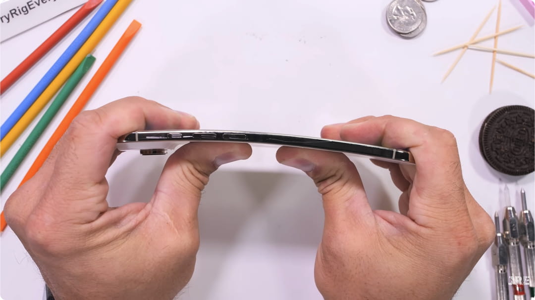 Zach Nelson y a coutume de faire passer les pires tortures à quasiment tous les smartphones jusqu'à la destruction totale. C'est notamment lui qui avait mis en lumière la fragilité de l'iPhone 6 et 6 Plus à l'époque, qui ne résistaient pas à une tentative de torsion à mains nues. Aucun problème pour l'iPhone Air, qui se tord légèrement lorsque Zach Nelson applique toutes ses forces pour essayer de le plier, pour revenir sans dommages en position plate. Bravo la structure en titane.
