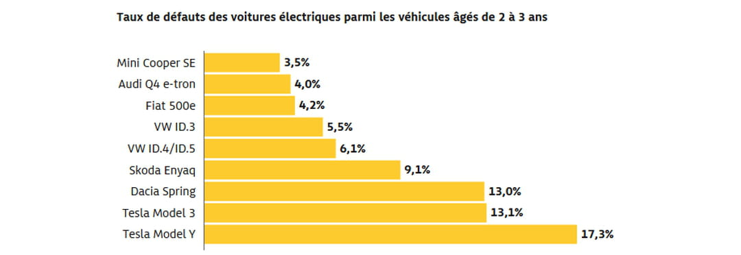 Ces bonnets d'âne ne sont pas dus à des bugs logiciels ou à des défaillances de la batterie, mais à des problèmes mécaniques étonnamment basiques. Et Tesla n'est pas le seul mauvais élève du test de TUV, la Dacia Spring et la Skoda Enyaq affichant également de mauvais résultats.