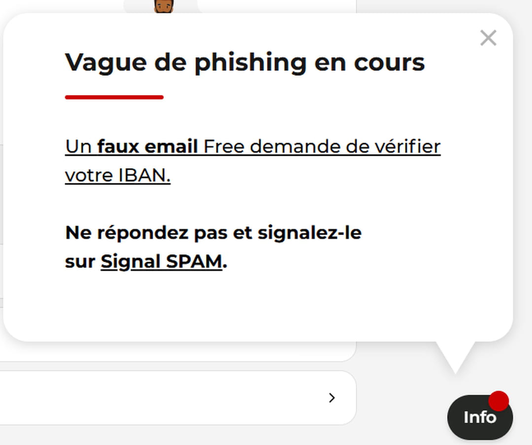 Attention si vous êtes ou si vous avez été client chez Free ! Suite au piratage de l'opérateur en 2024, une nouvelle vague de phishing inquiétante sévit actuellement avec des mails personnalisés qui affichent votre IBAN.