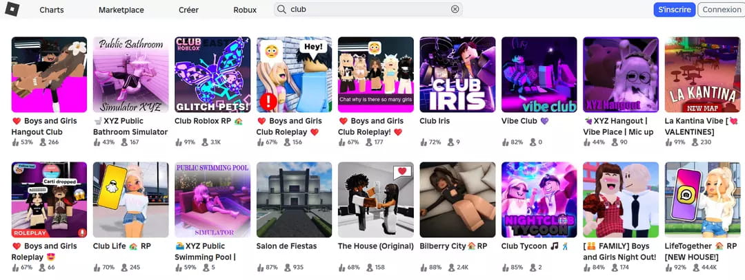 Ensuite, Roblox s'attaque aux jeux de type "social hangout" – des salons virtuels où les utilisateurs peuvent discuter. Désormais, ceux qui se déroulent dans des lieux privés (chambres, salles de bain…) ou à connotation adulte (bars, clubs, etc.) seront réservés aux personnes de 17 ans et plus. Le but est de limiter l'accès aux environnements propices aux dérives. Des chercheurs avaient en effet récemment constaté que les enfants de 10 ans pouvaient accéder à des "environnements hautement suggestifs", comme des hôtels avec des avatars féminins en bas résille, des avatars allongés les uns sur les autres dans des poses sexuellement suggestives, ainsi que des toilettes publiques où les personnages pouvaient choisir des accessoires fétichistes pour se déguiser (voir notre article).