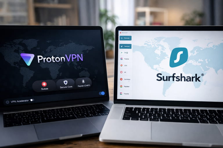 Difficile de les départager. ProtonVPN est redoutable pour ceux qui veulent un VPN qui disparaît dans l’arrière-plan et laisse la connexion respirer. Surfshark s’impose pour ceux qui préfèrent sécuriser tout leur environnement numérique avec un seul abonnement, sans se poser la moindre question.